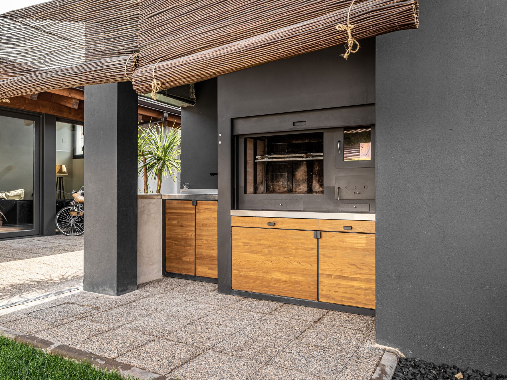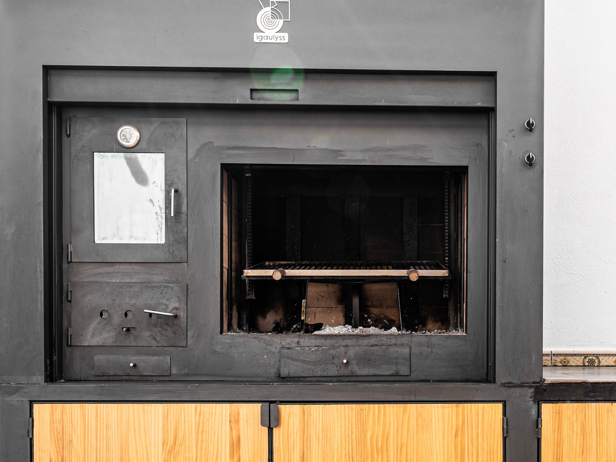 Parrilla con zona para brasas, Horno y Zona de trabajo.